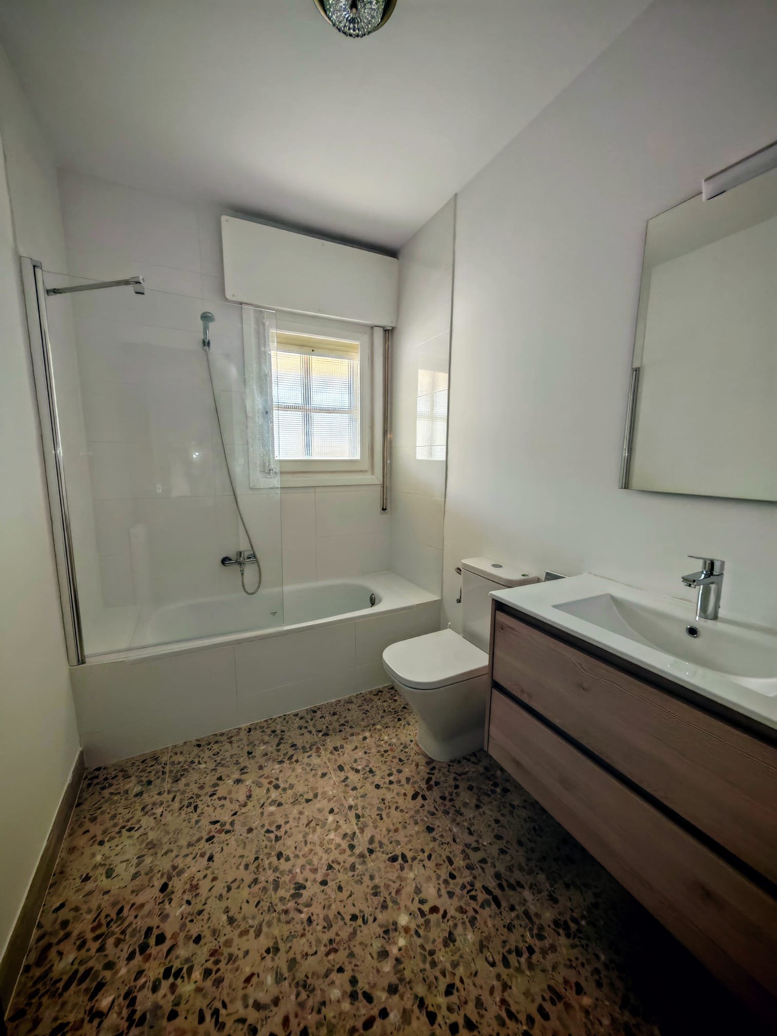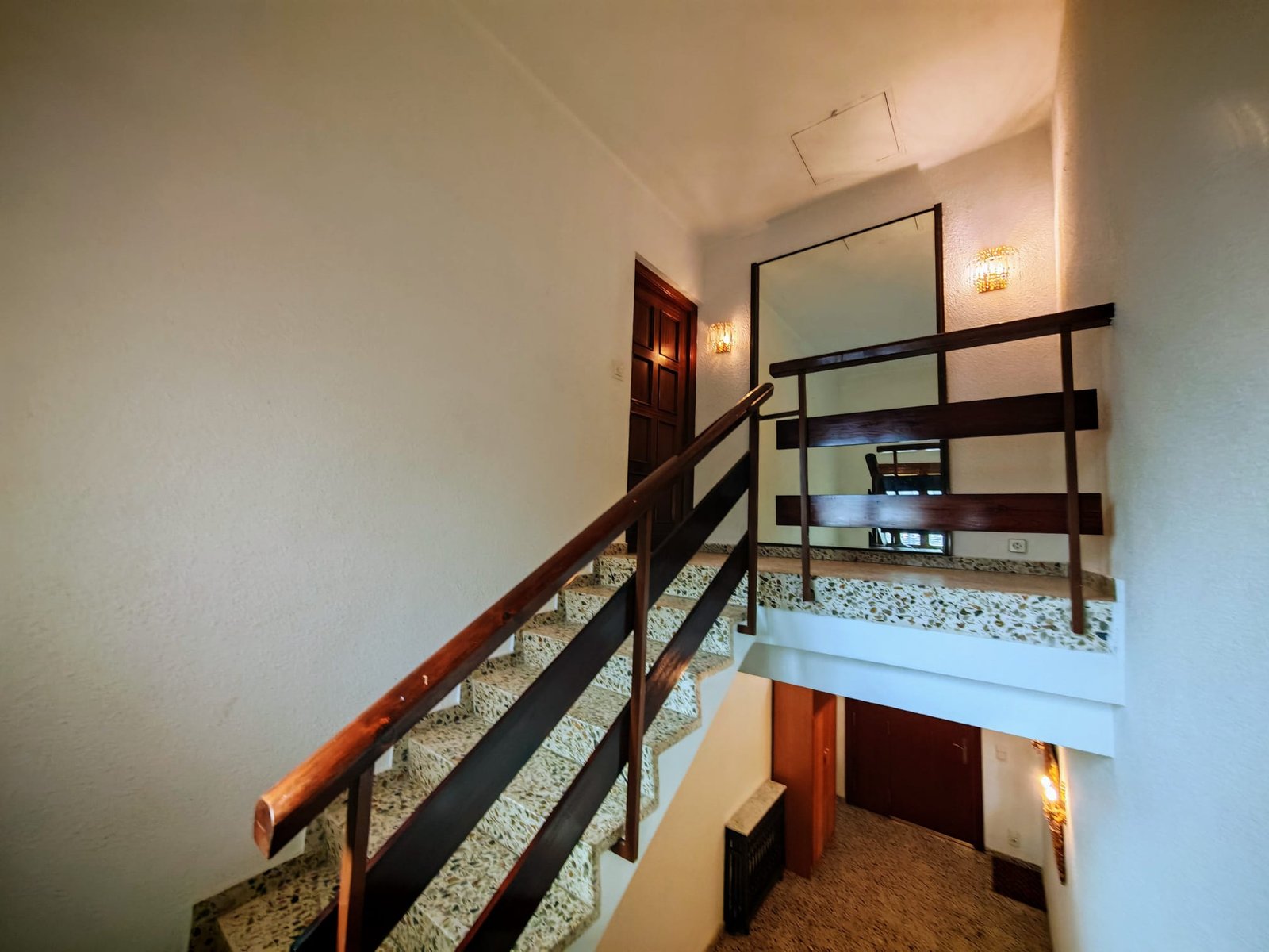 Casa de dos plantas. En la primera tenemos la entrada con la bodega, zona de aparcamiento y una cocina pequeña con acceso a una esplendida terraza jardín. En la segunda tenemos tres habitaciones, cocina equipada con acceso a otra terraza grande, baño completo y armario empotrado en el pasillo. Baño y cocina con reforma a estrenar. Hay otro baño en planta baja con ducha.